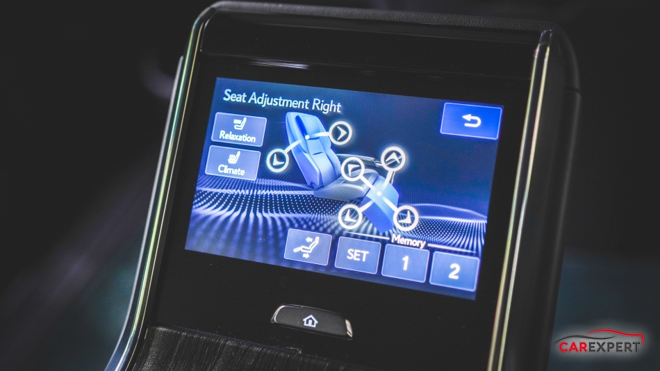 雙獨立 Ottoman 電動按摩座椅是 LM 300h 最吸引人之處,緣有的通風/加熱、電動幾向傾倒功能皆完整具備,更重要的是還多了多種模式與強度的按摩功能,再加上面積更大、包覆性更強的 Semi-Aniline 真皮包覆座椅,尊榮與舒適程度比起 Alphard 絕對是更上層樓;而以上這些功能都是透過雙獨立座椅中央的觸控螢幕來操作,且該具螢幕還可操作空調、電動車窗以及隔板升降/霧化等設定,讓乘客只要動動手指就可盡情享受,且座椅皆正巧位於 C 柱旁,即便電動華門開啟外人也難以馬上一窺乘客樣貌,隱私與豪華兼具。
