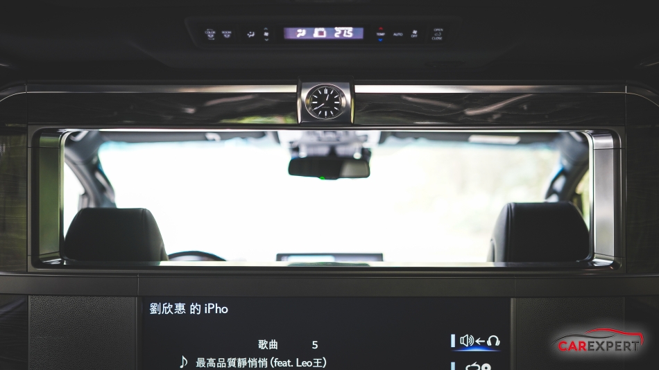 LM 300h 全車系皆搭載 Lexus Safety System+ 主動安全系統,擁有 DRCC 主動車距巡航、PCS 預警式煞車輔助以及 LTA 車道循跡輔助系統等功能,同時也有 360 度環景攝影、RCTB 後方車流煞車輔助與負責在 15km/h 以下才作動的 PKSB 防碰撞系統來防止發生在視覺死角的撞擊,整體來說安全防護相當到位。另外國內引進車型也因應後座高椅背所帶來的視野阻礙,標配有車內電子全彩後視鏡,可惜當天試駕的試乘車尚未配備,無法確認其效果,但可以確定的是,若是使用傳統後視鏡,後方視野幾乎完全遮蔽。