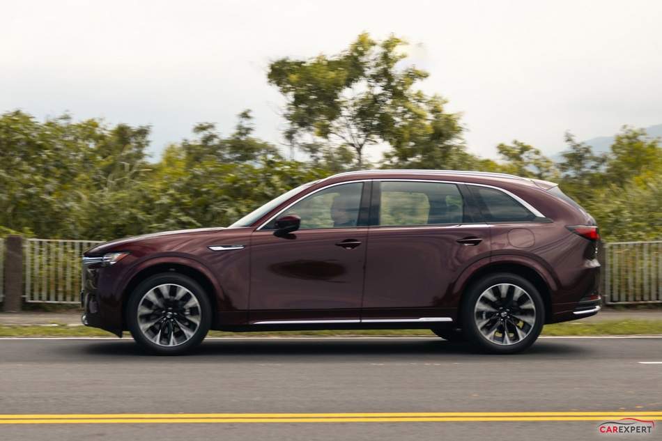 CX-90除了有著同級SUV最優異的六缸動力外,所匹配的縱置後驅平台也不動態表現也不含糊,透過前雙A臂後多連桿懸吊和智慧全驅,開起來不像一台大型SUV,轉向精準,即便走的還是家庭取向,懸吊路感回饋直接,可忠實傳遞路面資訊,高速過彎時KPC車身平衡控制技術還能抑制側傾,提高過彎時的舒適性和支撐性,車身晃動抑制亦佳,動力分配出色的全驅系統當然功不可沒,5.9米的迴轉半徑,更是讓人難想像這是一台五米ㄧ大型SUV所為,不像其他有些對手甚至還要加選後輪轉向。