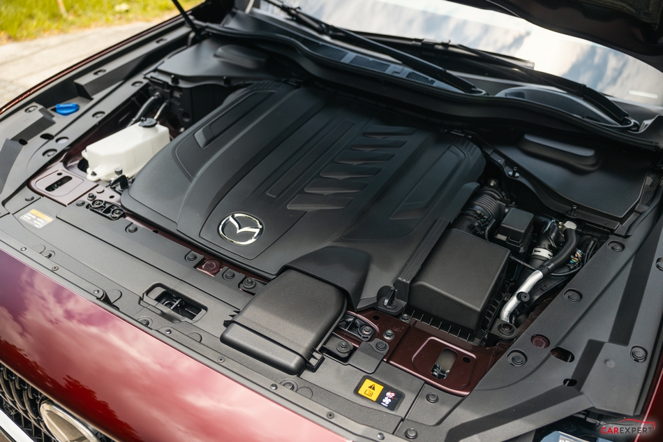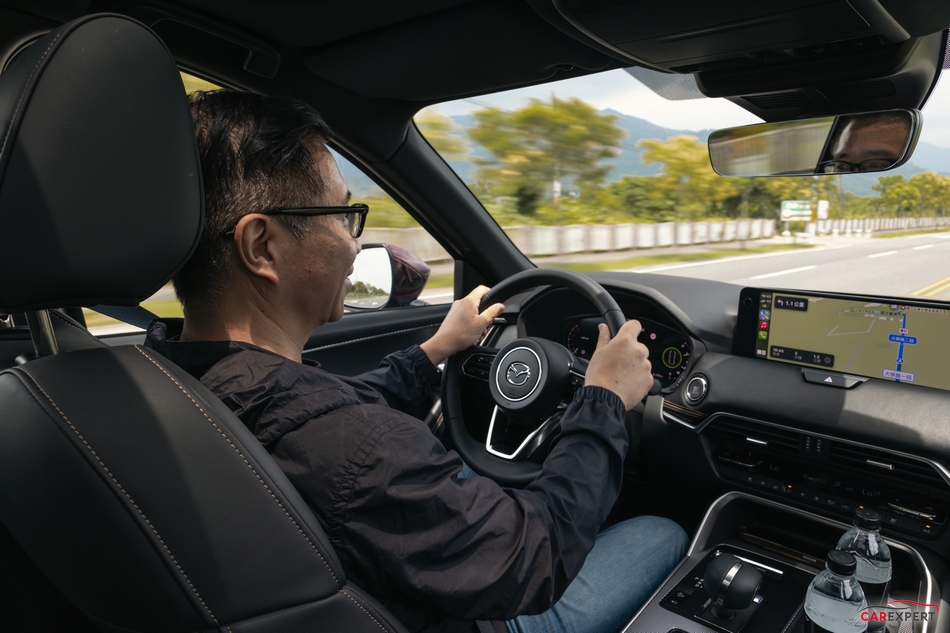 動力是本車的強項,從前葉子板上的「INLINE6」銘牌說明本車採用e-Skyactiv G 3.3升直六渦輪增壓汽油引擎單一動力,搭配48V輕油電,動力是原廠高輸出規格,來到345PS/51kgm,在匹配8速手自排和全車標配AWD四驅,多少人懷抱的直六夢想就此解鎖,強大的動力驅動起超過2.2噸的本車游刃有餘,加上有48V輕油電的助力與採用多片離合取代傳統扭力轉換器的8速手自排,後者檔位切換更迅速直接,起步輕快,3.3升大排量下動力給的是氣定神閑,需要即時動力,一個大腳油門,2000轉全扭力輸出的勁道與低沈引擎聲浪,那種快感絕非一般四缸可以比擬,更令人佩服的是每公升平均油耗跑出12.3公里,比起其他都在10公里出頭,只能說江山世代有人出!