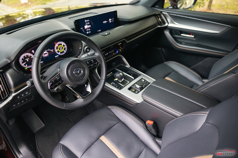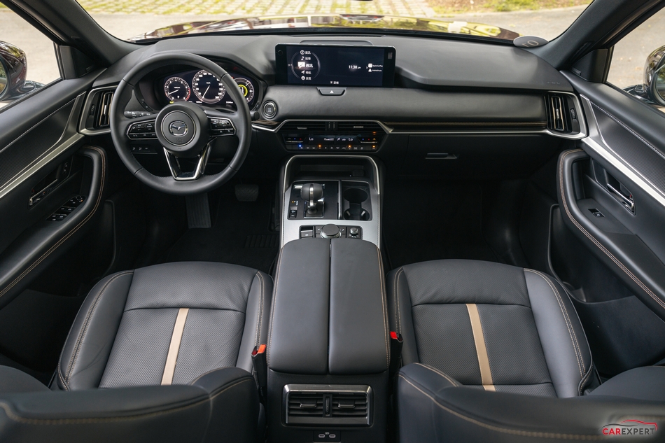 Mazda在內裝佈局上向來有其獨到心法,該有的12.3吋數位駕駛儀表、12.3吋中控螢幕、電子線傳排檔桿等全部到位,並透過大量物理式按鍵的保留,與悉心調教過的按鍵阻尼,讓每次的使用都能感受到滿滿的回饋感,展現最古典的人機界面,再加上車內材質用料也非常用心,從門板、中央鞍座扶等都是真皮包覆,觸感一流。