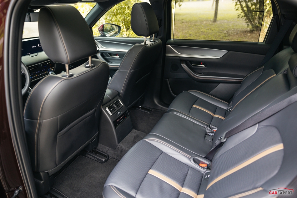 配備上,CX-90也是給的大方,Elite Plus除配備全車真皮座椅,駕駛和副駕各有10向和8向電調,無線Apple CarPlay/Android Auto、三區恆溫、無線充電、前中後各二的Type C插座等通通有;中階Premium更厲害,多前座通風、全景天窗、12 支喇叭Bose 音響以及座椅升級Nappa 真皮外,還多了同級罕見的方向盤四向電調以及駕駛面部偵測;至於更頂級的Premium Captain Seat旗艦六人座主打的就是豪奢路線,前座和第二排獨立雙座旗艦座椅都配有導流式通風功能,結合第二排中央多功能控制台,營造舒適愜意的私人移動空間。同時,方向盤也是棕黑雙色真皮包覆,搭配車內大量柔軟麂皮絨料輔以暖沙棕配色,以及暖沙棕菱格紋 Nappa 真皮座椅,呈現出座艙的豪華氛圍和細膩質感。