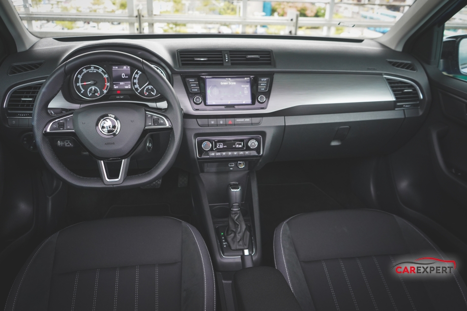 而此次試駕的 Fabia 魅力雙色版,在承襲上述優點的同時又有著高顏值的特性、有著車身雙色套件加持(魅力套件要價 7 萬元,加購雙色車身再加 1.5 萬),在車頂、A 柱以及後照鏡蓋等部件導入黑色塗裝(另有白色可選),營造出歐風十足與懸浮式車頂的動感視覺效果,另外輪圈也從原有 15 吋式樣升級為 16 吋的黑色烤漆 VIGO 式樣,加上小改款後更為銳利的 LED 照明燈具輪廓以及面積更大的水箱罩,讓 Fabia 無論是與同級對手或是價格帶相近的車款相比,都有著不容忽視的造型設計。