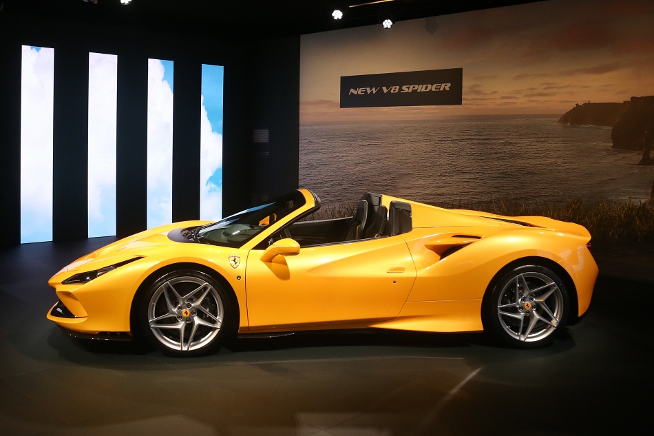 另外一輛F8 Spider則是搭載與F8 Tributo相同的3.9升V8渦輪增壓引擎,這具屢獲世界引擎大獎的引擎擁有720hp/8,000rpm最大馬力與78.5kgm/3,250rpm最大扭力,擁有與488 Pista Spider競技版本相同的輸出,同時具有更適合日常駕馭的性格,車重比前代車型488 Spider要減輕了20公斤。性能表現也不輸V12的812 GTS,擁有2.9秒完成0~100km/h起步加速、8.2秒完成0~200km/h起步加速,極速同樣超過340km/h。