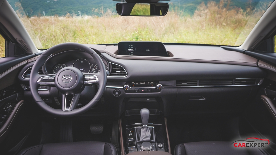 至於新車的內裝佈局則與 Mazda 3 機乎相同,儀表板 7 吋 TFT 彩色顯示幕與中控台 8.8 吋懸浮式 MZD Connect 多媒體系統螢幕佈局皆為駕駛導向設計,搭配抬頭顯示器能讓駕駛在最不影響駕駛視野的狀況下取得多樣行車資訊,而 CX-30 的 A 柱擺放位置也較 Mazda 3 更往前來讓駕駛獲得更佳行車視野;值得一提的是新世代 MZD Connect 多媒體系統支援 Apple CarPlay、導航(需選配)、360 度環景(旗艦型以上)等功能外,還取消了上一代有的觸控機能,據了解這是為了讓駕駛在操作時面對觸控、旋鈕兩種操作方式會產生的困惑感消失,所以在新世代機型上取消觸控功能只留下旋鈕,實際操作尚原本就已經相當直覺。