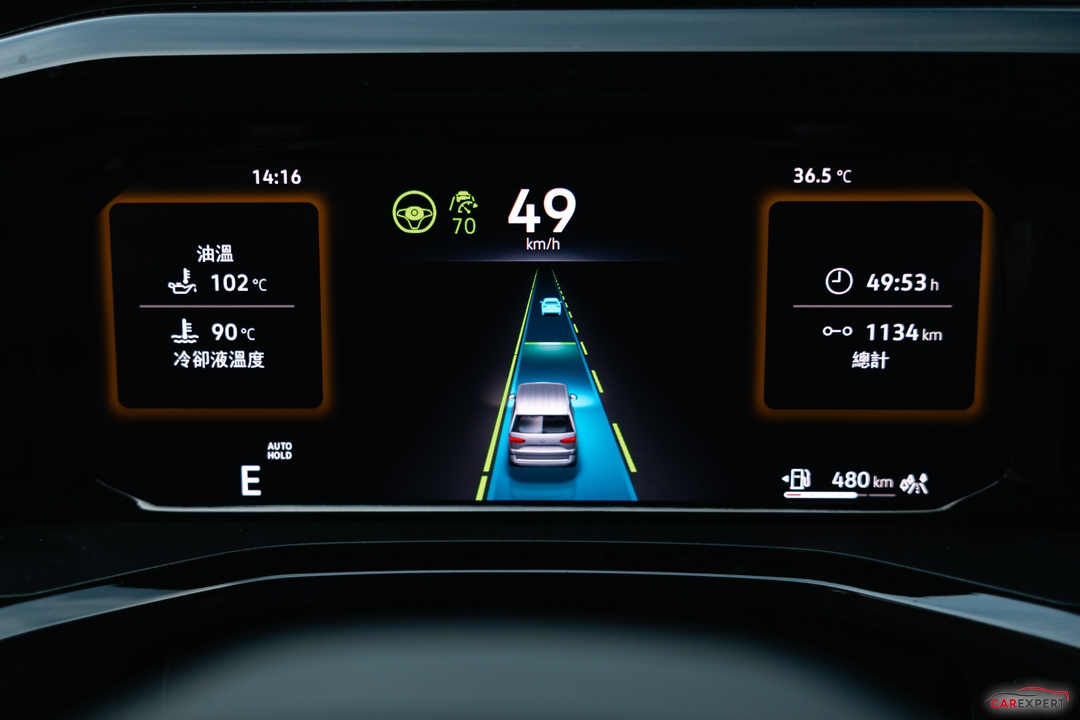本車控台設計和介面完全高級乘用車化,10.25 吋數位儀表訊息豐富,整合有邏輯,還有多重介面可選,啟動ID Drive的ACC享受Level2時,其大型彩色跟車畫面,輕鬆易讀又能降低疲勞度,10 吋中控主機機能齊全,還附實用的360度環景,唯透過螢幕下方操作的長條觸控式的空調介面,個人還是喜好傳統控鍵。位在儀表和中控螢幕間的電子線傳排檔鍵,則讓控台有更多的餘裕置物空間。